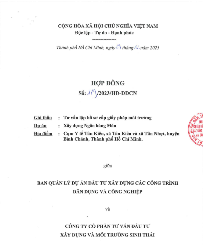 CONTRACT FOR NEW CONSTRUCTION PROJECT OF BLOOD TRANSFUSION AND HEMATOLOGY HOSPITAL (FACILITY 2)