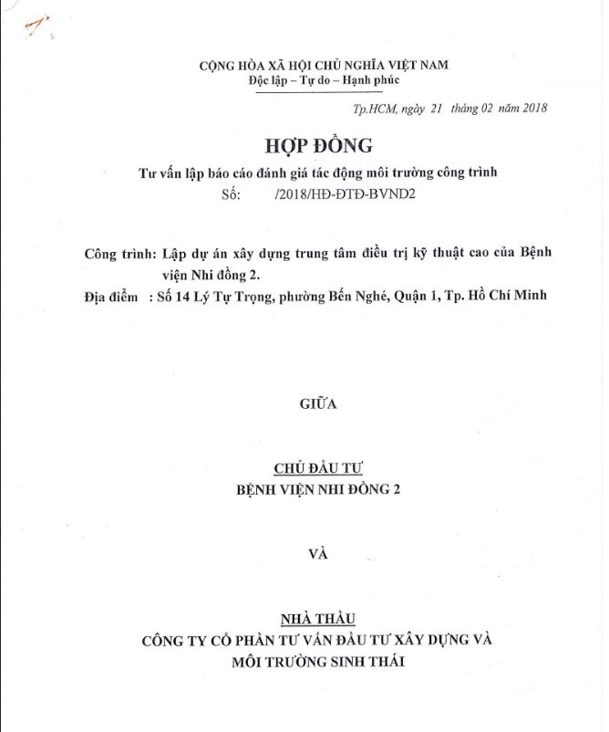 CONTRACT FOR NEW CONSTRUCTION PROJECT OF BLOOD TRANSFUSION AND HEMATOLOGY HOSPITAL (FACILITY 2)