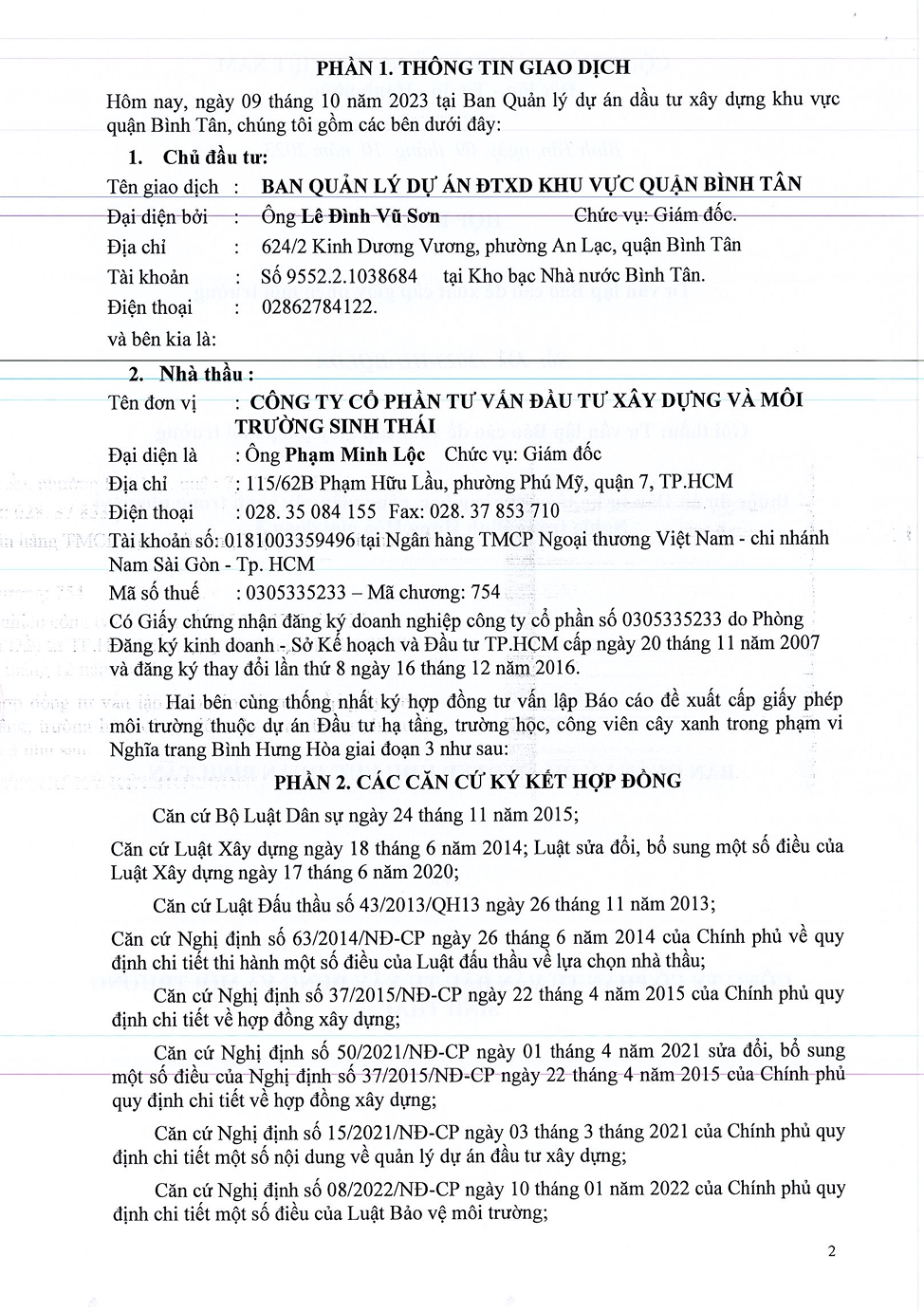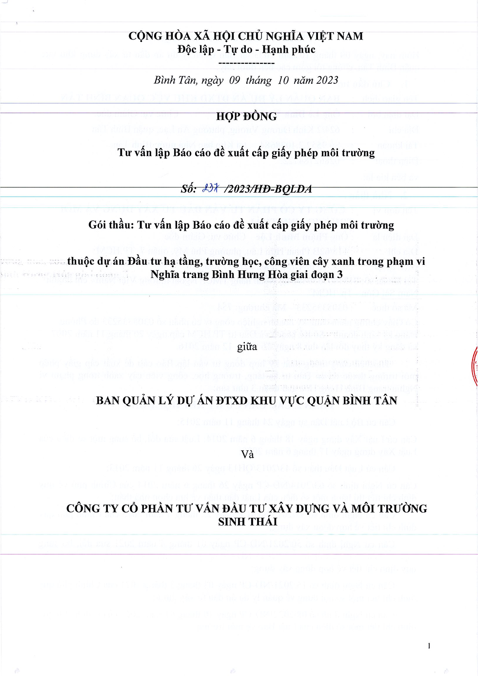 HỢP ĐỒNG DỰ ÁN ĐẦU TƯ HẠ TẦNG , TRƯỜNG HỌC , CÔNG VIÊN CÂY XANH TRONG PHẠM VI NGHĨA TRANG BÌNH HƯNG HÒA GIAI ĐOẠN 3